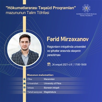 3. "Regionların inkişafında universitet və şirkətlər arasında əlaqənin yaradılması" mövzusunda təlim, 26.08.2021- Fərid Mirzəxanov, Macarıstan, "University of Pecs", magistratura