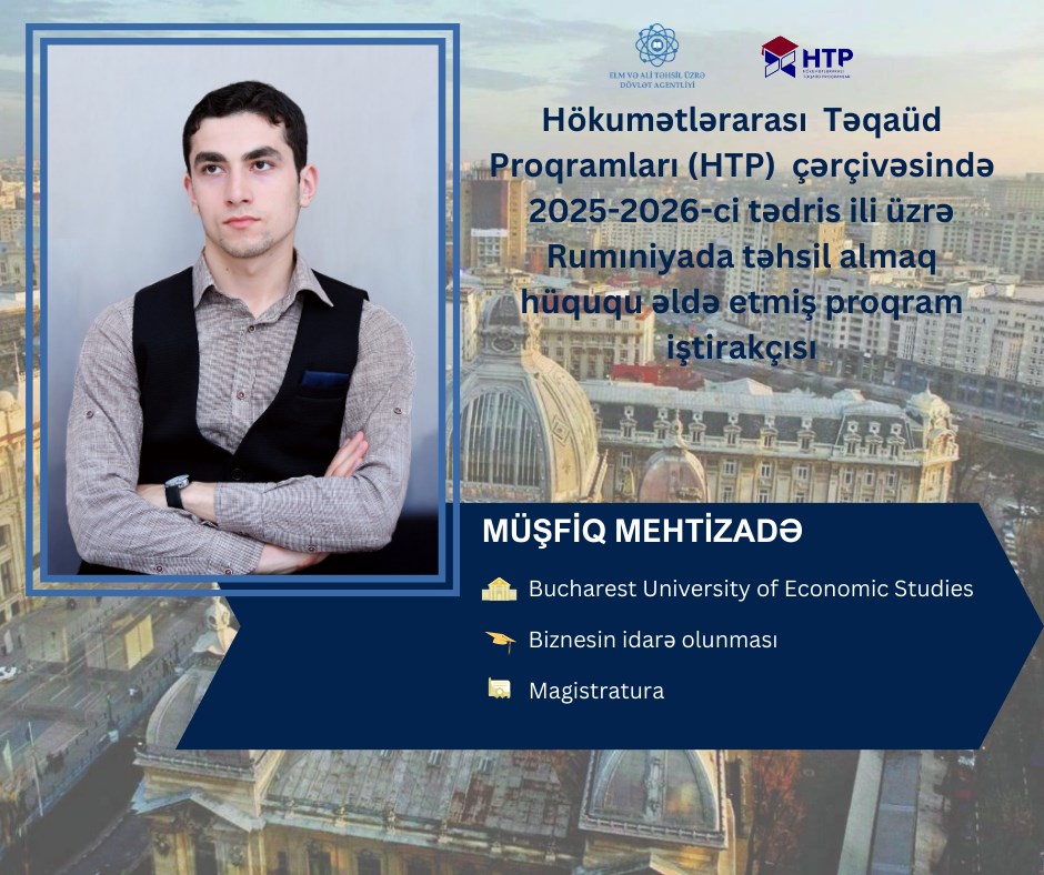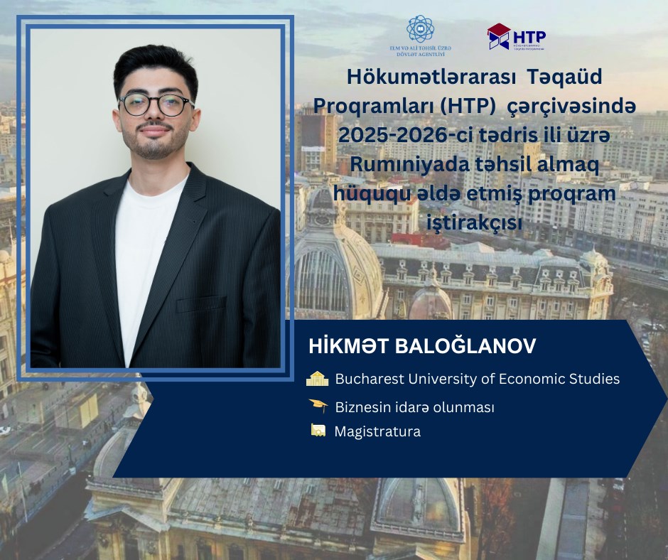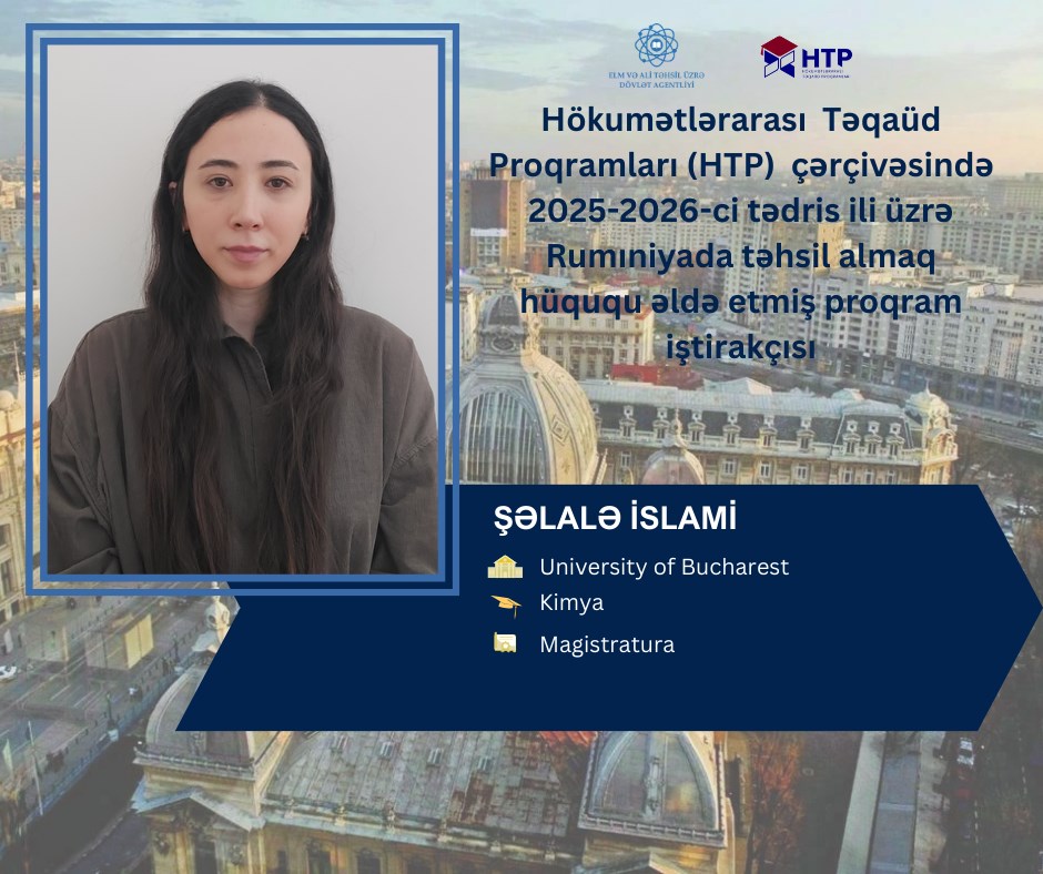 Hökumətlərarası Təqaüd Proqramları (HTP) çərçivəsində 2025-2026-cı tədris ili üzrə Rumıniyada təhsil almaq hüququ əldə etmiş tələbələrin bir qrupunu daha yaxından tanımaq məqsədilə hazırlanmış fotoalbomu diqqətinizə çatdırırıq.